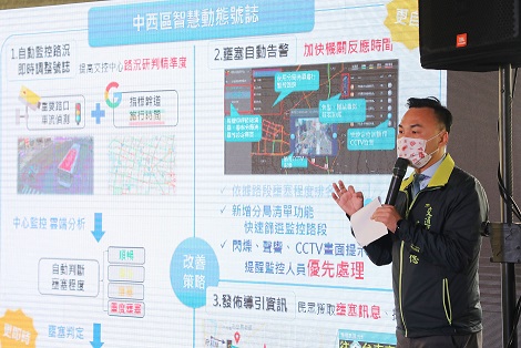 交通局長王銘德表示,新設動態號誌系統,可透過車流偵測與分析運算,針對不同壅塞程度的車流量和車流組成,自動進行適當秒數調整,並新增壅塞告警功能,依據壅塞嚴重程度提出警示畫面,輔助交通中心監控人員偵測道路狀況,提升交通中心反應速度、加快道路車流紓解效率。