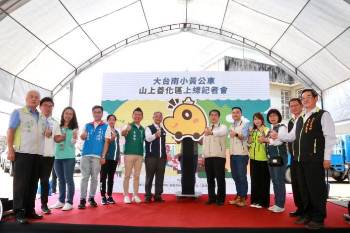 【本報記者蔡金旺台南報導】用公車的票價、享受計程車的服務!「大台南小黃公車」首次擴大服務至山上區及善化區,今(3)日上午在山上天后宮舉行小黃公車「綠2-1」啟航典禮,由市長黃偉哲主持,山上區長余基吉及地方人士參與,黃偉哲表示,這條路線連絡山上與善化兩區,也是兩地首條小黃公車服務,為大台南公車路網再添1條生力軍。