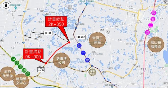 工務局表示,大區道南318線是官田工業區車輛往麻豆的重要道路,向東可通往台一線,往南銜接市道176線通往台84快速道路,也是串聯周邊葫蘆埤公園、總爺藝文中心等遊憩景點的觀光要道。