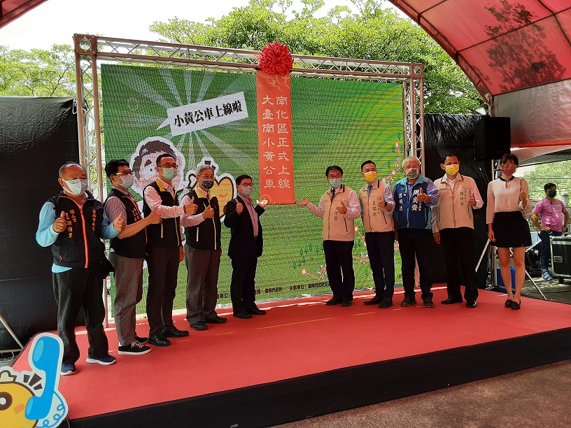 由台南市長黃偉哲在任內的創舉小黃公車政策,並在交通局長王銘德全力配合推動,現再已順利完成20條小黃公車路線,其中之一南化區關山里段,除是位處台南市東邊最特偏的地方,來回市區需140公里,但因當地有310戶住民,又都屬於老弱婦孺居多,也是最重要公車路段。 台南市南化區關山里綠29小黃公車路段,在黃偉哲攜手王銘德努力下,終於昨日上五10時45分在南化天后宮廣場,圓滿主持綠29路線啟航典禮,王銘德指出,昨日開通南化區新路線「綠29」,因路線規劃可配合居民生活需求,每日將由玉井站行經南化區公所,再駛往關山里龍眼林、木瓜坑等地,來回總行駛里程約140公里,行駛時間需3.5小時,每天都會有往返固定2班次,並提供預約叫車服務。