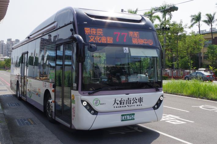 77路公車於105年3月23日上線服務,路線導入電動巴士車型營運,為本市首條電動公車路線,由安平原住民文化會館往返南紡購物中心,途中行經臺南火車站後站、赤崁樓、成大醫院、成大校園、海安商圈、水仙宮市場、水萍塭公園及永華市政中心等站,除提供市區東西向聯繫外,另兼具通勤學與日常採買等多元功能,相當便利。今於9月23日起改由府城客運營運後班次服務水準將再提升,歡迎市民朋友繼續多加利用搭乘。