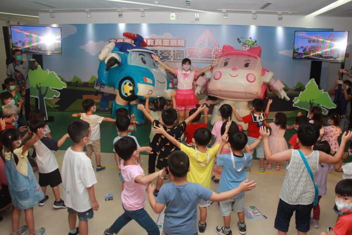 臺南市政府交通局邀請小朋友與救援英雄小隊一起守護交通安全。