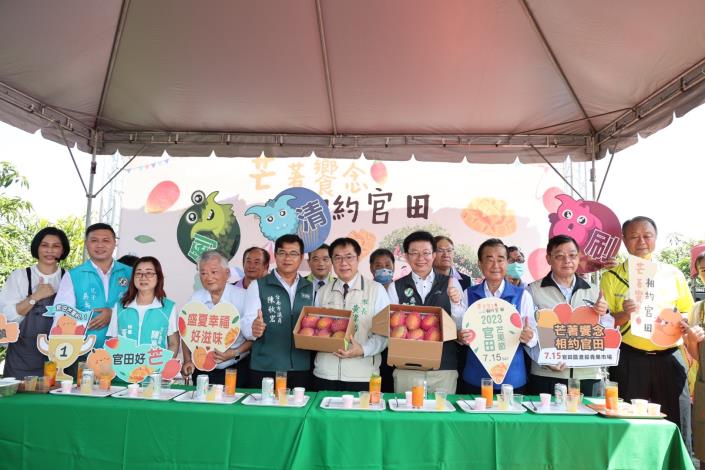 台南市官田區芒果節開跑 黃偉哲邀請民眾品嚐台南味 。