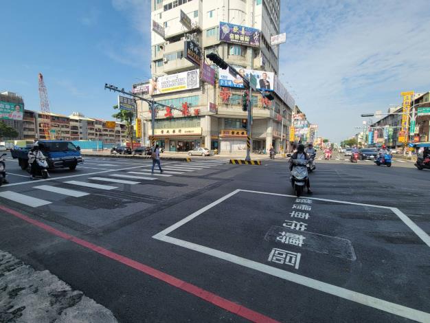 台南市政府交通局重新規劃道路西門路與北安路口偏心式左轉專用車道改造安全便捷不塞車。