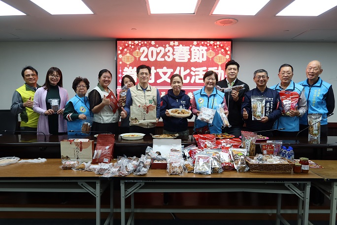 台南市議員林美燕與水交社文化學會理事長孫桂珠行銷春節眷村文化美食活動
