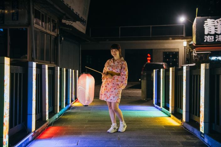 觀光旅遊局說明,今年關子嶺活動打造6處夜間光影藝術,是以各式關子嶺IP化為入夜後的祈福守護靈,並結合關子嶺溫泉區在地特色景點量身所打造,分別在閒雲橋的「和式色調,華族廊道」、溫泉老街的「溫泉大路,浪漫遊街」、天梯入口處的「和豐,和福」,接著是繼續往大成殿廣場的「走覽,關嶺上河圖」、「與光共舞」與「和光風華」,走拍一趟就可感受漫步溫泉鄉的和風氛圍。