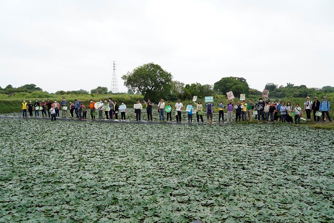 經過眾人13年的努力,臺南官田的菱角田守護了水雉,也營造了野生動物棲地,增進農田生物多樣性。(慈心基金會提供)