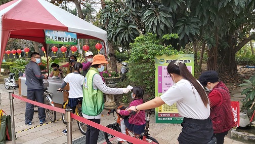 虎頭埤風景區管理所為讓遊客玩的開心加強防疫。(記者蔡金旺攝)