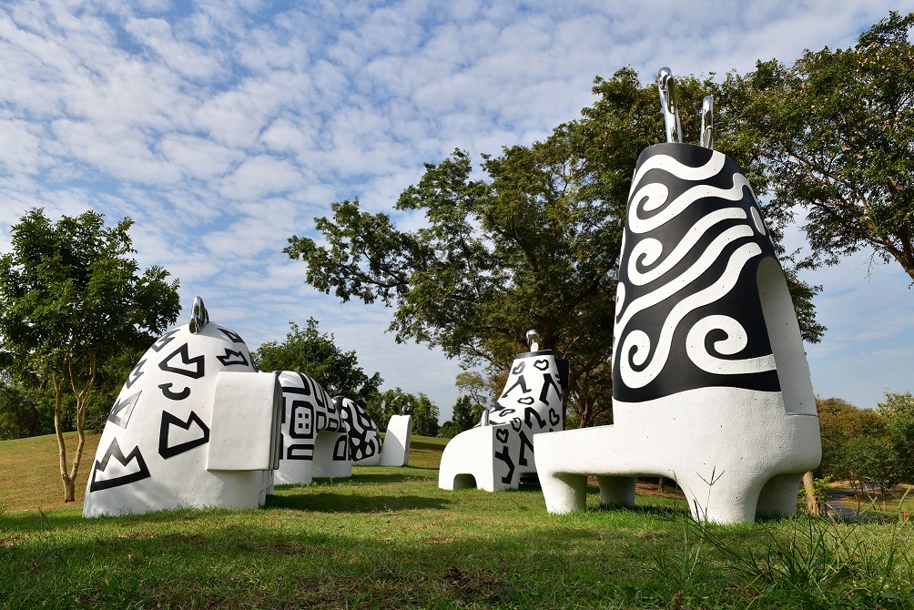 【民進日報記者凃政宏台南報導】交通部觀光署西拉雅國家風景區管理處繼去年官田遊客中心建築景觀獲得國家卓越建設金質獎,今年邀請曾獲國際設計獎的藝術家陳昱良,於官田遊客中心大草地設計創作,以大西拉雅觀光圈的在地品牌「仙境西拉雅Touching SIRAYA」為概念,創作大型黑白時尚系同名品牌公共藝術,榮獲2024美國繆斯國際設計大獎(Muse Design Awards) 景觀設計-雕塑設計類別銀獎。