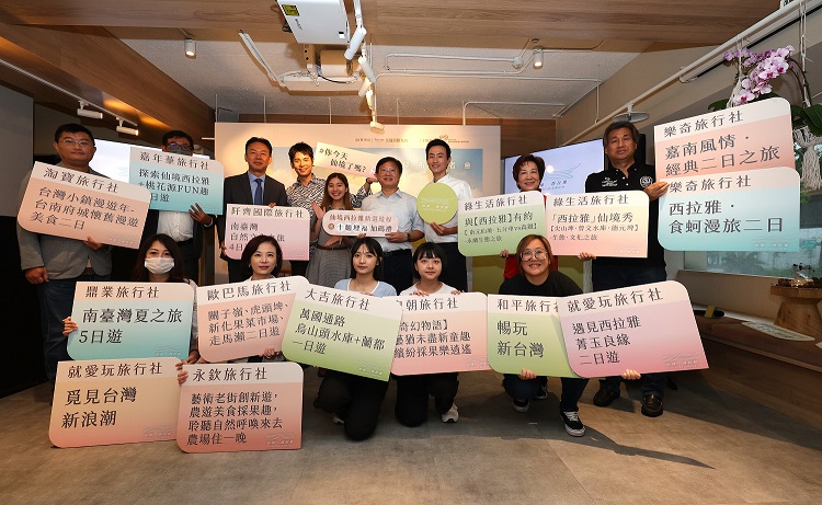 【民進日報記者凃政宏台南報導】隨著國境開放為爭取國際遊客再度重遊,交通部觀光局西拉雅國家風景區管理處今(16)日於臺北市勺日生活選物咖啡廳舉辦「仙境西拉雅遊程發布會」,由交通部觀光局西拉雅國家風景區管理處處長徐振能、臺灣入境旅遊協會理事長王全玉、旅行社聯保聯誼會會長朱永達及13家旅行業者代表等貴賓,共同發布具西拉雅品牌特色與創新亮點之15條經典行程,更特別加碼推出價值超過500元的獨家「仙境西拉雅-十麵埋福禮盒」,只要參加仙境精選遊程就有機會獲得限量加碼好禮,來仙境旅遊好吃好玩還有好康可以拿,西拉雅宣告8月16日起開放洽詢各家旅行社購買遊程,搶攻國際與國內旅遊商機!