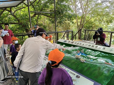 本次淨山活動不同於以往,不僅重視環境清潔,更結合登山安全宣導、地景導覽與生態教育等多元內容。返程途中,隊伍停留於牛埔泥岩水土保持教學園區及牛埔農塘,由臺南市地質公園協會的專業導覽人員現場講解在地特殊的地質景觀與生態環境,讓本次淨山活動增添更豐富的教育意義。
