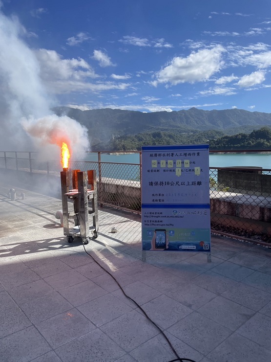 南水局持續在曾文水庫大壩施作人工增雨。(記者蔡金旺攝)
