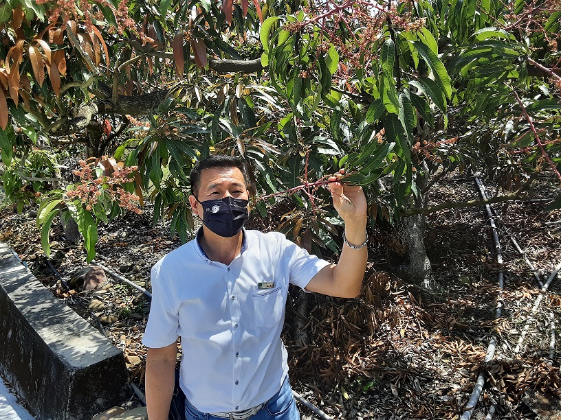 【記者蔡金旺台南報導】台南市南化區外銷日韓為主力的鏡面等三大示範區,以生產優質愛文芒果而聞名,今年開花季先因缺水,後再遭逢酸雨和焚風的肆虐,有開花但結的是有果實內沒有子,即俗稱空砲彈,或者,芒果樹就直接吐長嫩葉,實際成功果實只剩2成,南化區農會總幹事溫進添昨會同農糧署、農改場、市政府農業局現勘,期政府能體恤農民,提供農業災害補助。