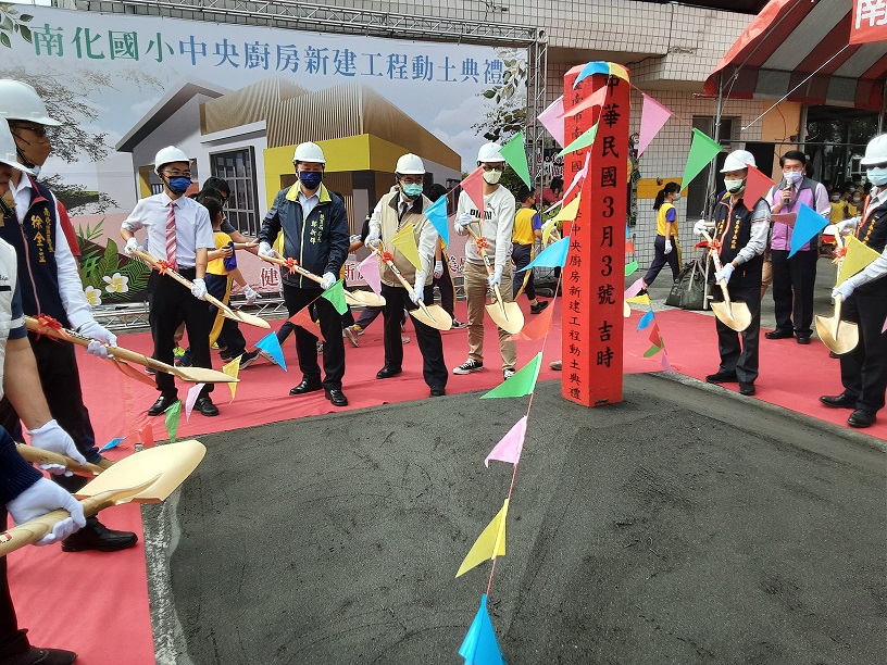 【記者蔡金旺台南報導】為提升偏鄉學校午餐與衛生安全,由教育部核定補助台南市南化國小廚房新建工程,於昨日由市長黃偉哲與教育局長鄭新輝、南化國小校長張理誠等人主持動土,將成為全國推動山區學校中央廚房政策典範,預估動支3500萬元,將有6校530人受益。 台南市有山區學校中央廚房政策典範之稱的南化國小廚房,於昨日上午9時30分在國小廣場,由黃偉哲與鄭新輝、張理誠等人主持中央廚房動土,預定111學年度啟用,因是屬於山區學校南化與左鎮等6所國小共用廚房,供餐人數含教師和學生有530人,將可讓學生吃的安心、也讓家長放心。