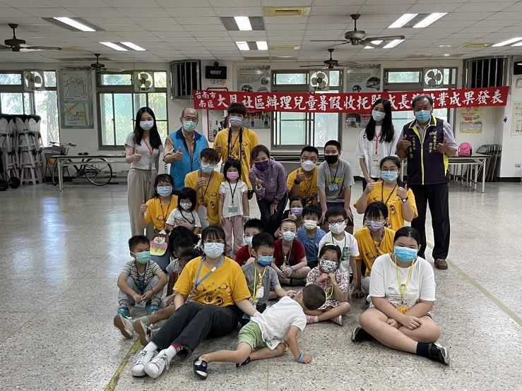 台南市大恩里弱勢照顧不中斷連續24年弱勢家庭暑托並合影。