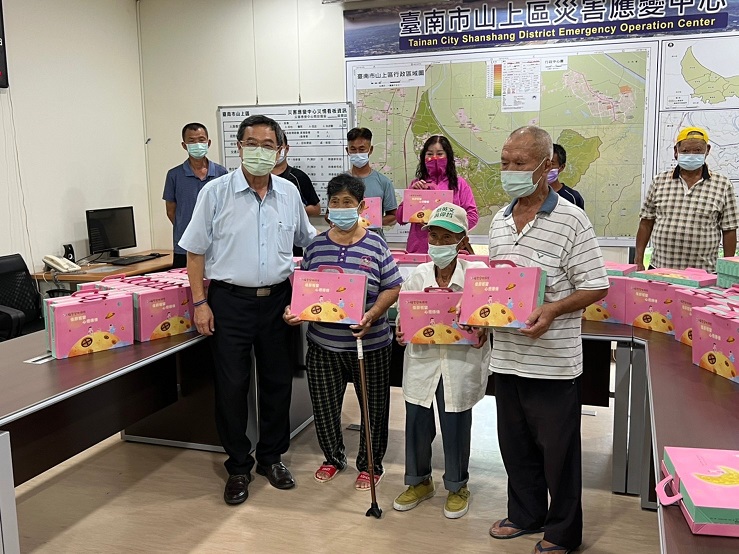 市長黃偉哲也特別叮嚀在節慶時,要更關懷弱勢長者與家庭,讓大家都能在節慶時感受到社會的溫暖情意,所以公所趕在中秋節前夕,將月餅禮盒送至弱勢家庭和長輩手上,提前祝福秋節平安快樂。
