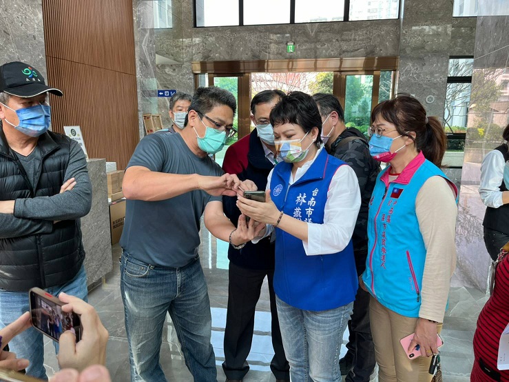 台南市議員林燕祝偕工務局與環保局等單位會勘合宜建設新完工住宅大樓。