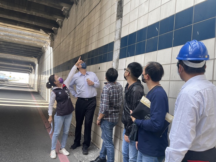 台南市議員林美燕現勘促修繕逾40年華南地下道磁磚剝落。