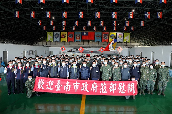 台南市長黃偉哲春節前夕赴空軍第一戰術戰鬥機聯隊勞軍並合影。