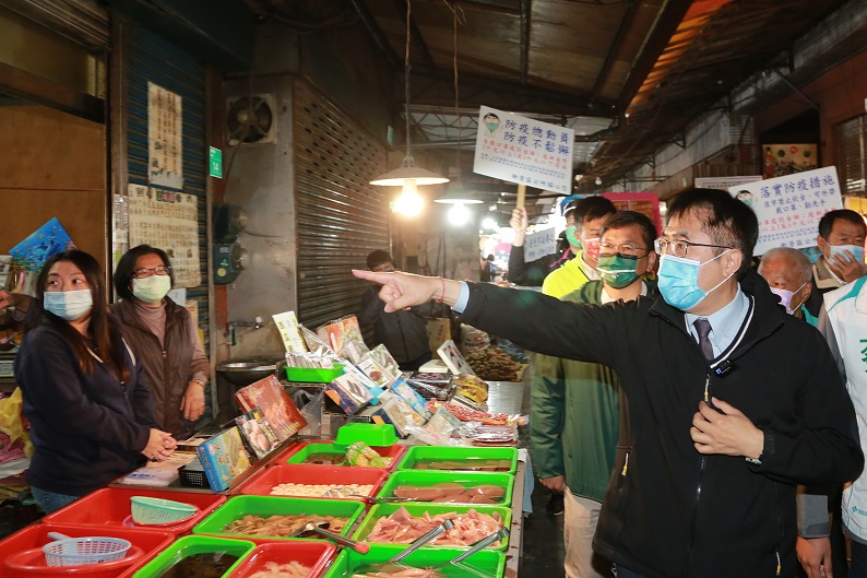 目前南市府積極輔導傳統市場落實防疫工作,如每日環境清潔及自主消毒、出入口設置防疫洗手台、提供酒精消毒區供民眾使用、市場攤商每日量測記錄額溫、每週以漂白水全面消毒、補助熟食攤裝設透明遮罩或玻璃櫃、啟用無人機及手舉牌、減少出入口、持續在各市場宣導戴口罩及維持社交距離等防疫措施。