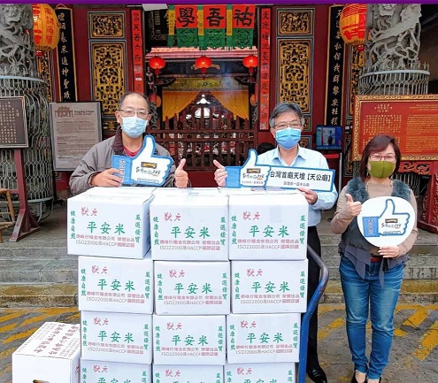 台灣首廟天壇董事會秘書陳淑鈴指出,台灣首廟天壇昨日上午在廟埕辦理平安米代捐贈活動共捐出信眾回捐的愛心米1500包白米,受惠單位有台南市聾啞福利協進會、藤澤養護之家、社團法人高雄市崇愛老幼等3單位。