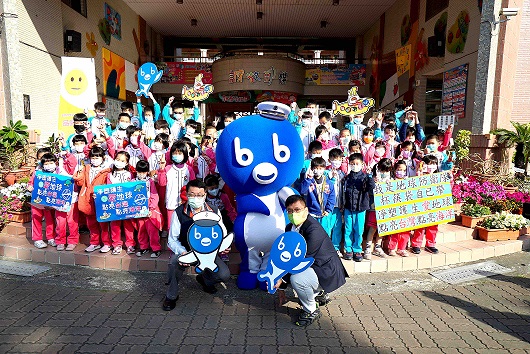 廣受師生喜愛的「海洋保衛隊」隊長bb,親自出任務到台南新泰國小,為師生推動減塑加油打氣。