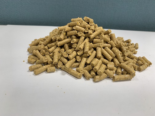 畜試所研究利用飼料米製成粒狀飼料成品。(記者蔡金旺攝)
