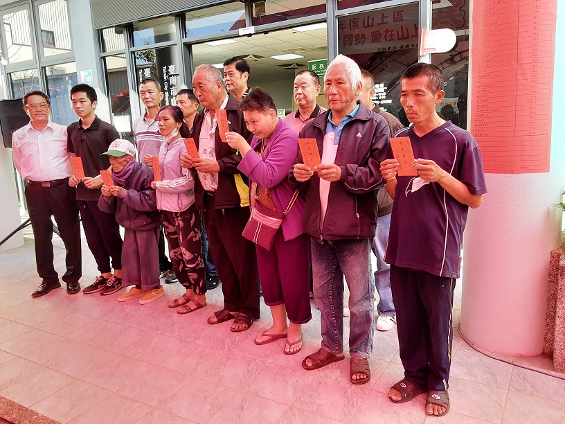 山上區長余基吉指出,今年山上區公所特別結合行善團、愛心會及在地企業,藉由公私協力共同合作的模式溫馨傳愛,舉辦歡喜圍爐迎新春活動,除了發放29戶低收入戶、21戶中低收入戶、11名獨居老人、5名22歲以下身心障礙者、2名特境、24名弱勢兒少及2名邊緣戶春節禮金以外,也讓弱勢家庭提前圍爐,一同感受到社會的溫暖與愛心,體驗山上區一個宜居幸福溫馨的小鎮。