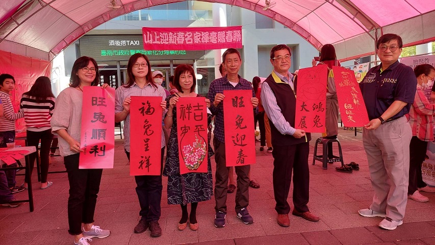 【記者蔡金旺台南報導】爆竹一聲除舊歲,為了迎接新春佳節,山上區公所於112年1月14日(星期六)上午9時30分至11時30分於山上區公所前廣場舉辦「山上迎新春名家揮毫贈春聯活動」,邀請陳君天、翁銘宏、林幸絹、許秋萍等書法名家至現場挽袖揮毫,每位名家字體皆獨具特色與精彩藝術風格,每年皆吸引許多民眾慕名而來,挑選喜愛的吉祥春聯帶回家。