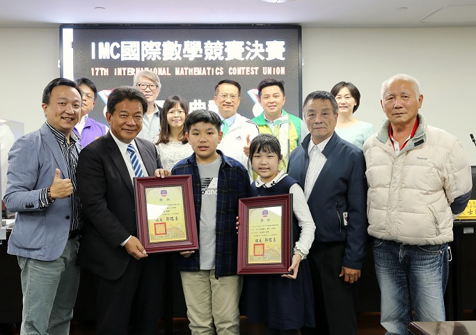 郭信良議長表揚國際數學競賽得獎學生勉勵繼續學習。