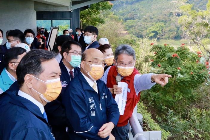 蘇貞昌聽取賴建信說明曾文水庫水情。(記者蔡金旺攝)