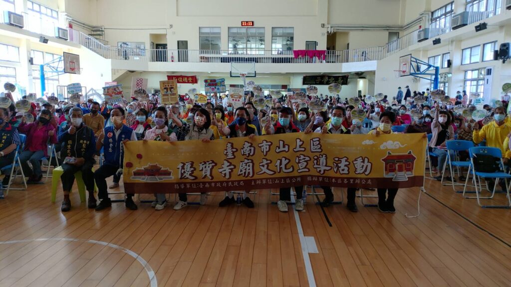 台南市山上區公所今日(11月6日)上午9時30分在山上國中活動中心舉辦「優質寺廟文化宣導活動」,來自區內各宗教團體幹部、信徒及民眾等約700人參與。活動邀請民政局廖俊添科員說明優質寺廟文化等規定,另特別邀成大博士顏振標演講「忘不了的廟口」,藉多元的宣導方式深化寺廟優質化政策的觀念。