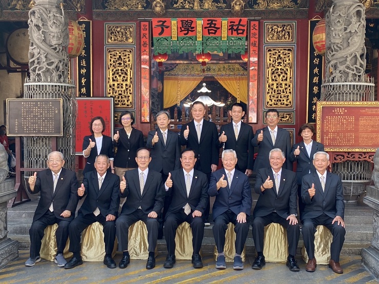 台灣首廟天壇第11屆董事長徐國潤副董事長卓永崇與全體董監事和秘書陳淑鈴合影。(記者蔡金旺攝)