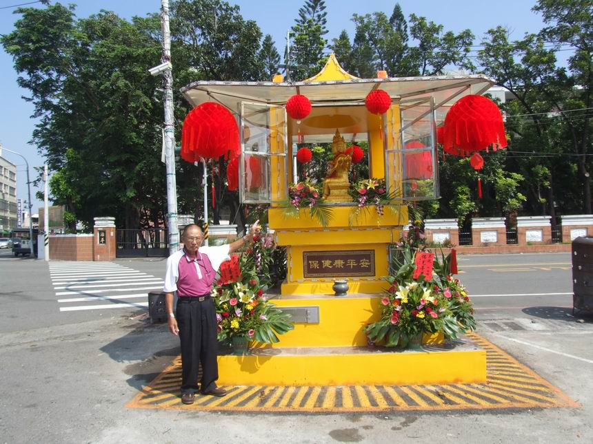 台南市新化區民生路與忠孝路交叉路口,因為毗連現已遷移原新化青果公司及新化高中,每天來往車輛眾多,車禍也因而頻傳,台南市新化區朝天宮主委,也是新化區知名文史工作者許滄淵,為確保行人和車輛通行的安全。
