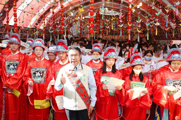 【民進日報記者凃政宏台南報導】台南特有的習俗「做十六歲」成年禮儀式,是傳統府城家庭與社會的集體記憶,也是登錄之市定民俗,今(22)日農曆七夕在中西區開隆宮盛大舉行,台南市長黃偉哲親自到場祝福,期許每位滿十六歲的青少年們能夠成為更為懂事與守法的好公民,且勇於承擔社會責任與人生新挑戰,並祝福學業進步、展翅高飛。