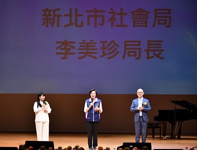 新北市政府社會局局長李美珍(中)出席「心光傳愛祝福音樂會」,肯定身心障礙者演出努力的成果。
