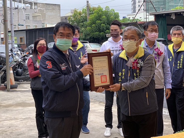 臺南市長黃偉哲頒發當選証書給黃正谷。(記者蔡金旺攝)