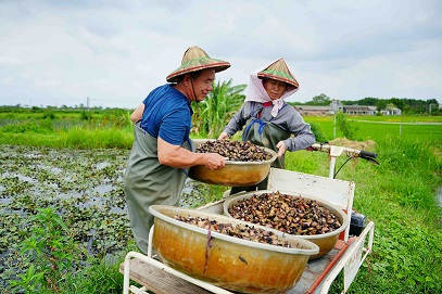 里仁支持官田綠色保育菱角實踐經濟與永續共榮從生鮮到冷凍熟菱角 持續守護水雉的棲地作物。