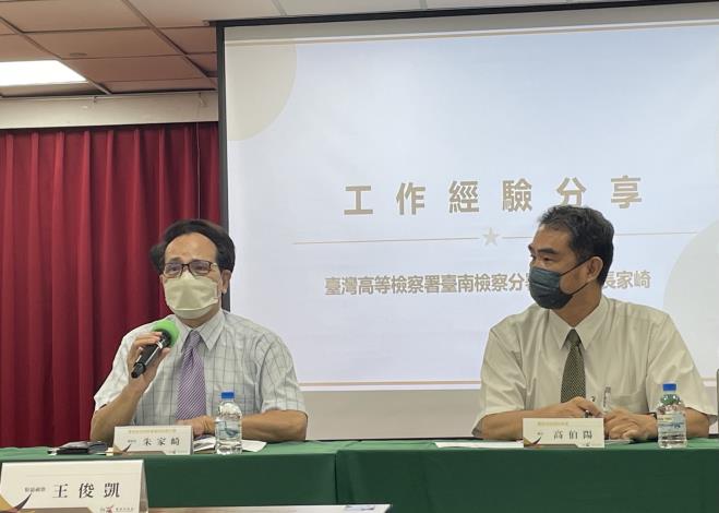 台南巿政風處辦理工作檢討會臺南高分檢檢察長朱家崎傳承經驗。