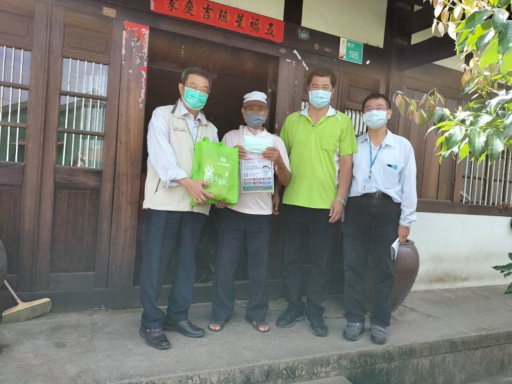 余基吉親自到家發送防疫物資給獨居老人。(記者蔡金旺攝)
