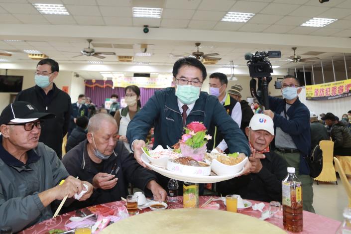 黃偉哲 親手送上豐盛佳餚讓百位街友圍爐提前感受年節氣氛。