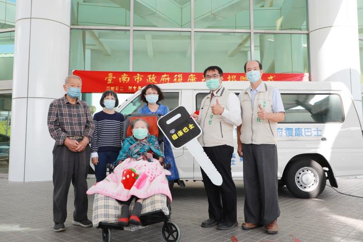 黃偉哲指出,復康巴士對於行動不便者以及長者外出幫助很大,也減輕家屬交通接送的負擔。他感謝郭雪蓮女士及郭陽銘先生發揮愛心,捐贈南市府復康巴士,讓台南市民能夠同受其惠,並滿足社會福利的需求。