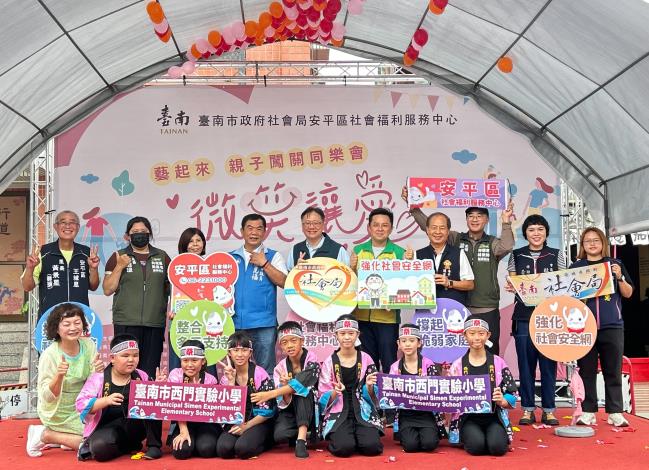 【民進日報記者凃政宏台南報導】台南市社會局安平區社會福利服務中心,昨(20)日於安平區開台天后宮辦理「微笑讓愛飛揚」社會安全網宣導活動,活動吸引超過300位民眾參與。社會局長盧禹璁、市議員盧崑福、李啟維、王城里里長黃景星、安平開台天后宮總幹事林國明及西門實驗小學校長呂翠鈴皆到場共襄盛舉,場面歡樂又溫馨,也拉近民眾對於公私社福單位的認識,更讓參與民眾及家庭留下了難忘的回憶。