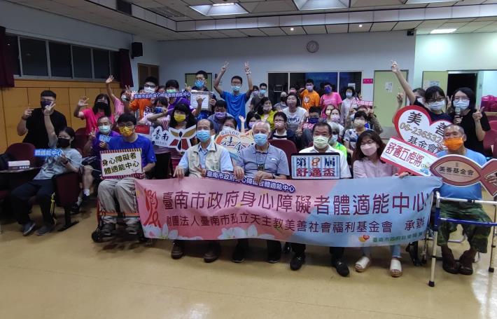台南市社會局身障者體適能中心第8屆舒邁盃頒獎與會合影。(記者黃伃綵攝)