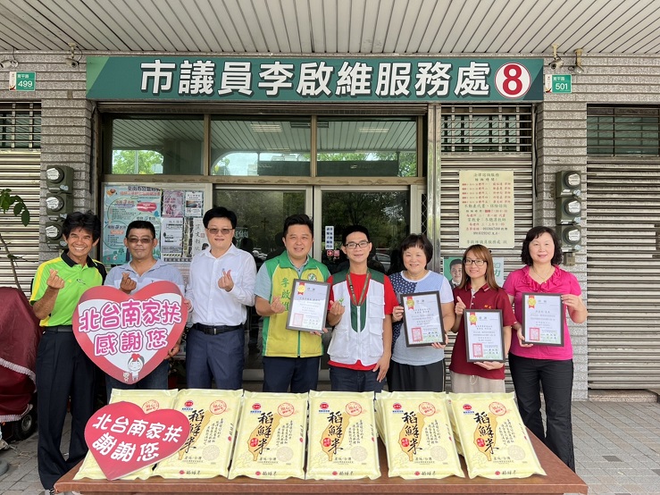 台南市議員李啟維及企業合捐物資和8萬元助北台南家扶中心。