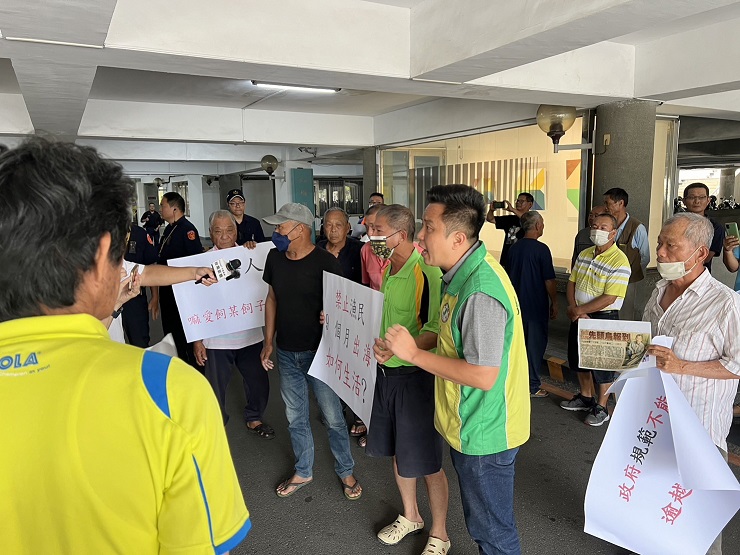 陳情漁民憤慨表示政府禁止他們出海作業不合理也不合法,只能7、8、9月颱風天出海,實在是要他們的命,颱風季節怎麼出海,他們是小型船筏,規定他們1.5海哩等於2.7公里以外才能作業,越外面風浪越大,對小型船筏相對危險,他們的漁業執照就是寫著近海沿岸,難道是寫假的,他們舉例台中規定500公尺,為何台南2.7公里!