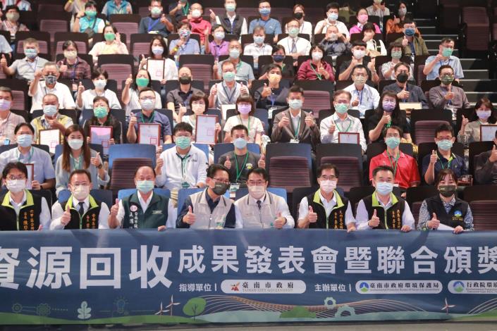 今日資源回收成果發表會暨聯合頒獎,分別表揚111年參與「惜用資源顧地球評比」、「資源回收申報獎勵評比」、「安平漁港資源回收站」及「台南市國民小學廢乾電池回收競賽」之機關、學校、社區及集合式住宅、企業等,共計頒獎160個績優單位、頒發42件感謝狀。