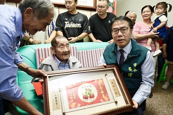 黃偉哲慰訪梁清傳親自致贈重陽禮金1萬元及賀匾。