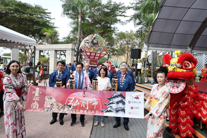 府說明,自2011年起,日本弘前市與台南展開農業交流,每年皆來台南辦理物產展;而台南也多次前往當地行銷台南芒果,弘前市政府皆大力協助,雙方往來密切,並於2017年締結為國際友誼市。今年台灣燈會在台南舉辦,弘前市長也率團前來共襄盛舉,弘前市今年7月也在當地蘋果公園辦理台南芒果節,引起熱烈迴響,期待未來擴大交流領域,兩市友誼永固。