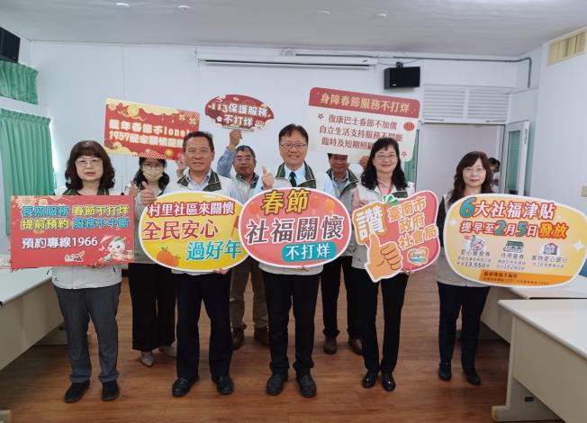 為讓有長照需求的家庭及身心障礙者得到妥善的照顧,社會局於春節前進行需求調查,春節期間將妥善安排人力,讓失能長者、身心障礙者的居家服務、喘息服務、日間照顧等長照服務皆能維持正常運作。社會局也針對身障者各項支持服務不中斷亦不增加額外費用,包含持續提供臨時及短期照顧服務、自立生活支持服務,另針對行動不便乘坐輪椅身障者也可於7天前提出復康巴士接送預約申請,以維持春節期間的生活品質。